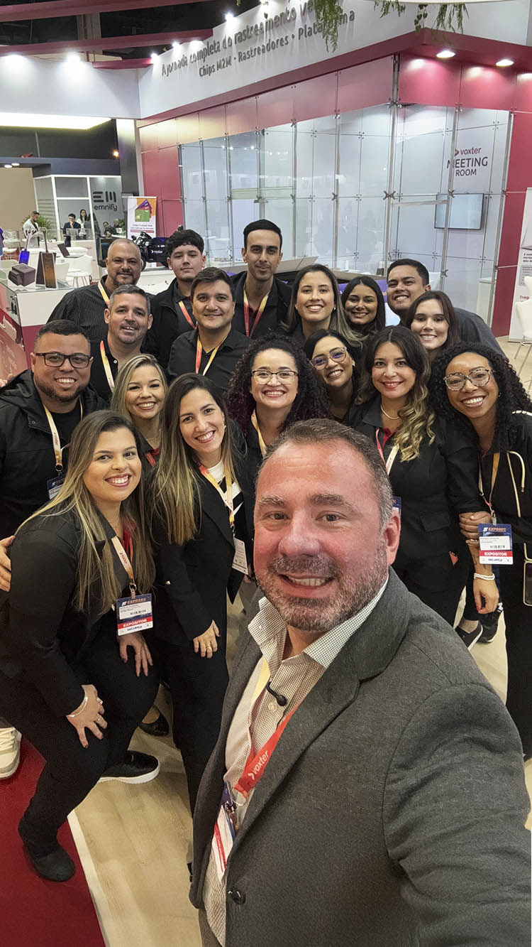 Parte da equipe no estande da Voxter na EXPOSEC 2025
